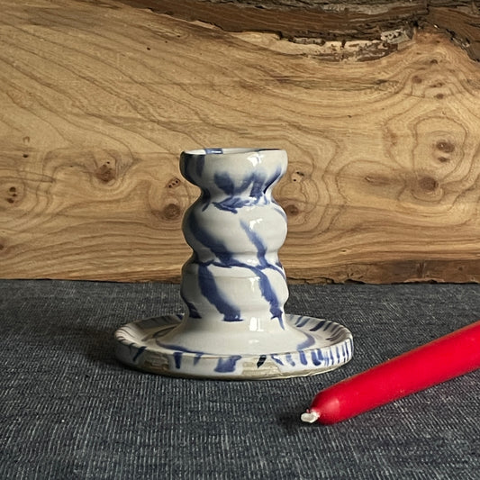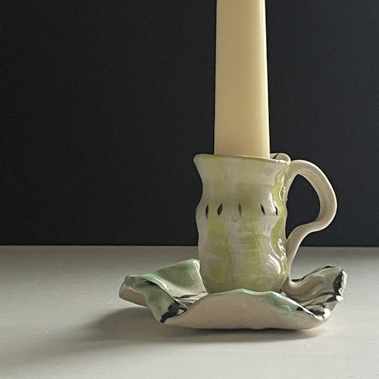 Cute wonky candlesticks in soft pastel blues and greens - handmade and hand painted gift