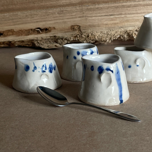 Cute sauce jugs - blue and white painted unique ceramics - 30ml 1floz 2tblsp capacity