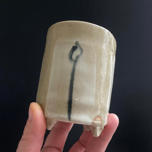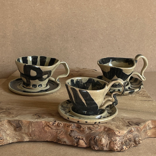 Groovy black and white slip small mugs - 200ml flat white handmade unique ceramic mugs