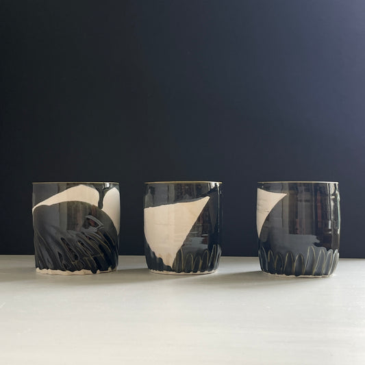 Black and white abstract splash porcelain tumblers - unique handmade ceramics