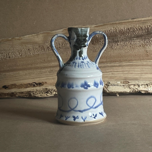 Blue and white abstract loops bottle vase - handmade unique ceramic